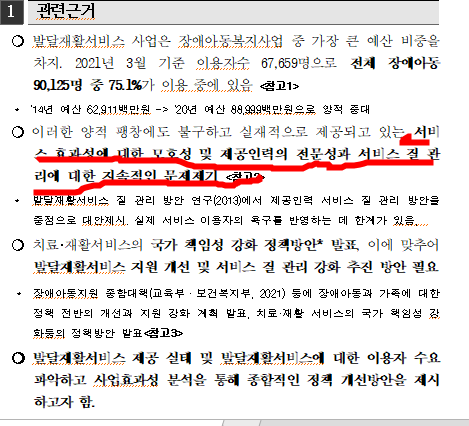 첨부 2. (관련근거)재활서비스 및 제공인력에 대한 문제점
